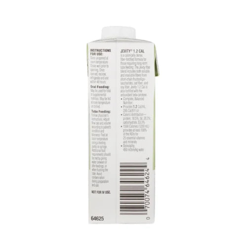 Jevity 1.2 Cal ARC with Fiber is a high-calorie, nutritionally complete enteral feeding formula designed to support individuals who require extra nutrition.
